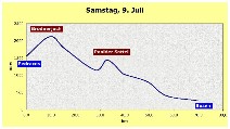 Besonderer Erwähnung bedarf ein mehr als 2 km langer Straßentunnel vor Predazzo - ein wahrer Höllenschlund. Nachdem wir eingefahren waren, gab es kein Zurück, Umkehren wäre in der Gruppe nicht organisierbar gewesen. Gleich zu Beginn wird man von tosendem Gebläselärm empfangen, und als sich dieser Lärm nach langer und banger Fahrt wiederholt, hat man es bald geschafft. Die Passage ist nicht zur Nachahmung empfohlen, unbedingt umfahren!