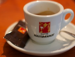 Nach weiteren 30 km erreichten wir Palmanova, die von den Venezianern im 16. Jh. in perfekter Geometrie angelegte Festungsstadt wo wir uns im Caffè Hausbrandt einen Spritz gönnten.